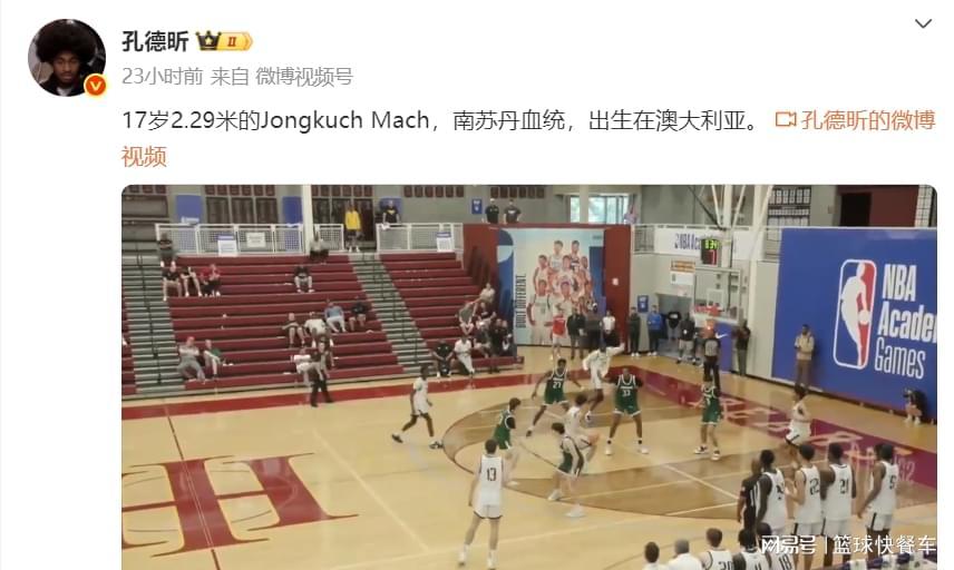 这位名字为Jongkuch-Mach的年轻小将,今年只有17岁,不过,他的身高已经达到2米29,这是多少篮球人梦寐以求的身高。据悉,Jongkuch-Mach出生于澳大利亚,有着南苏丹血统,这也就意味着,在未来Jongkuch-Mach极有可能会代表澳大利亚或者南苏丹出战。而这两支球队,都会是中国男篮的劲敌,南苏丹是中国队在世界大赛上的劲敌,而澳大利亚则是中国队在亚洲大赛上的劲敌。
